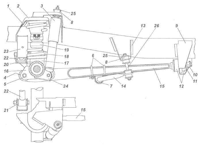 Ну а далее, собственно принялся менять сайлентблоки (4) и опорные втулки (12) продольных реактивных тяг.