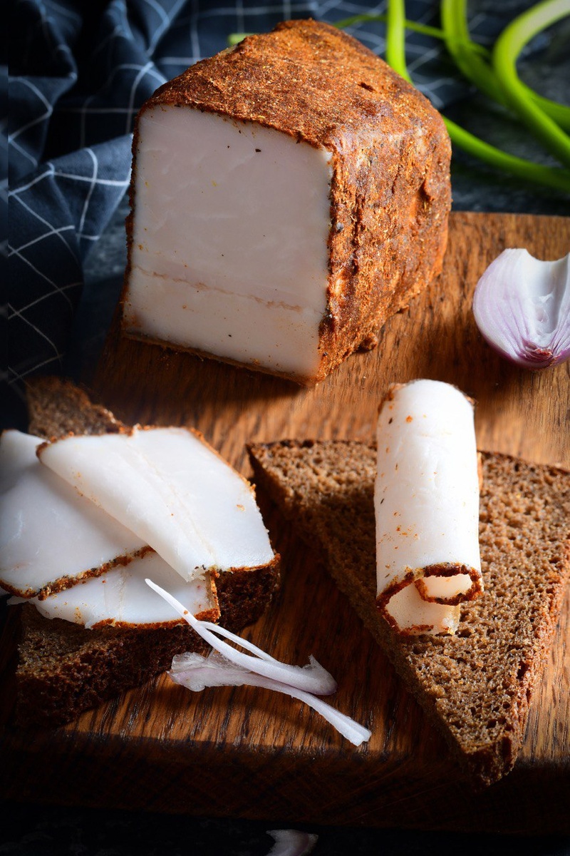 Спросила я у своих подписчиков. «Прилетел» этот вариант, который заинтересовал своей оригинальностью, ну и мы сами любим необычные интересные рецепты, экспериментировать с разными специями, поэтому, долго не раздумывая, решили опробовать его. Сало, как говорится, онО и в Африке сало 😁 Но, если сделать к нему вкусную обсыпку, то в Африке вы уже такого точно не найдёте, это уже эксклюзив, деликатес и такое будет только у вас, ни в одном супермаркете или на рынке такого нет) Попробуйте обязательно! Ингредиенты даю на 1 кг сала, берите широкие куски, примерно высотой сантиметров пять. Сало должно быть нежное и мягкое, чтобы нож входил в него, как в масло и не приходилось «пилить». Сало - 1 кг Соль пищевая (высший сорт) - 1 пачка (1 кг) Черный перец молотый - 3 ч.л Чеснок - 5-6 зуб Паприка молотая (сладкая) - 3 ч.л. Уцхо-сунели (или хмели-сунели) - 2 ч.л. Перец Чили красный (молотый) - 1 ч.л. Всё, наше сало готово! Во-первых, если так упаковать, вы сохраните аромат специй, во-вто