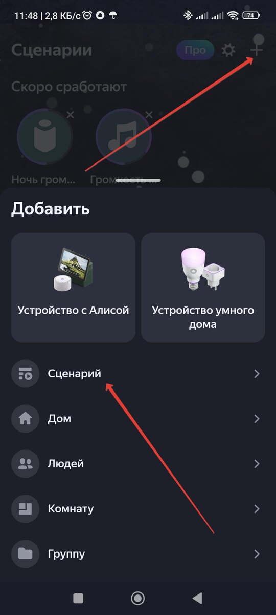 Итак, датчики протечки воды установлены, работают (хаб/колонка принимает от них сигналы) теперь осталось сделать нормальный сценарий. Вроде я сделал всё по максимуму. Сценарий заточен именно на оповещение, возможности включить в цепочку перекрывающие входные вентили нет. Задача - своевременное оповещение всеми возможными способами (которыми располагает Алисочка). Все датчики объединены в один сценарий, т.е. при протечке в любом месте сработает единый сценарий оповещения и потом надо будет выяснять кто из датчиков сработал. Итак, сначала создаём сценарий. Значок плюса вверху и раздел "Сценарий" В первом пункте даём понятное имя сценарию - протечка, вода, потоп... главное чтобы было вам понятно. Можно поменять значок для большей наглядности. Следующий раздел "Если". Тут мы будем указывать наш(и) датчик(и).