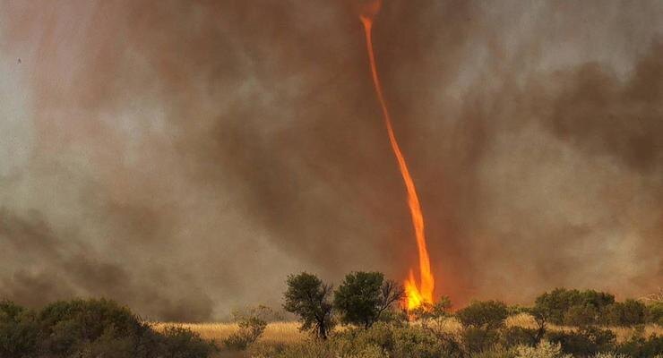 В кадр местных жителей попал вихревой поток раскалённого воздуха, которому для образования достаточно лишь сильных воздушных потоков.