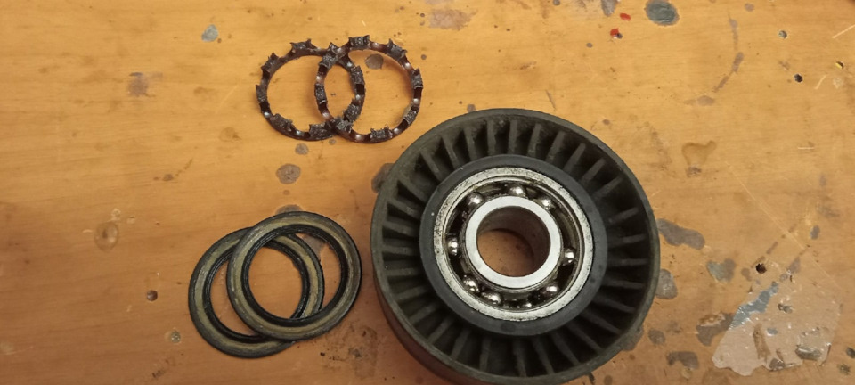 Следует отметить, что ролик японского производства в очень хорошем состоянии. Люфта практически нет, есть только выработка от ремня. Российского производства ролик тоже в хорошем состоянии, видимо менялся недавно. Все промыл, смазал, собрал обратно. Теперь можно смело отправлять в запас.