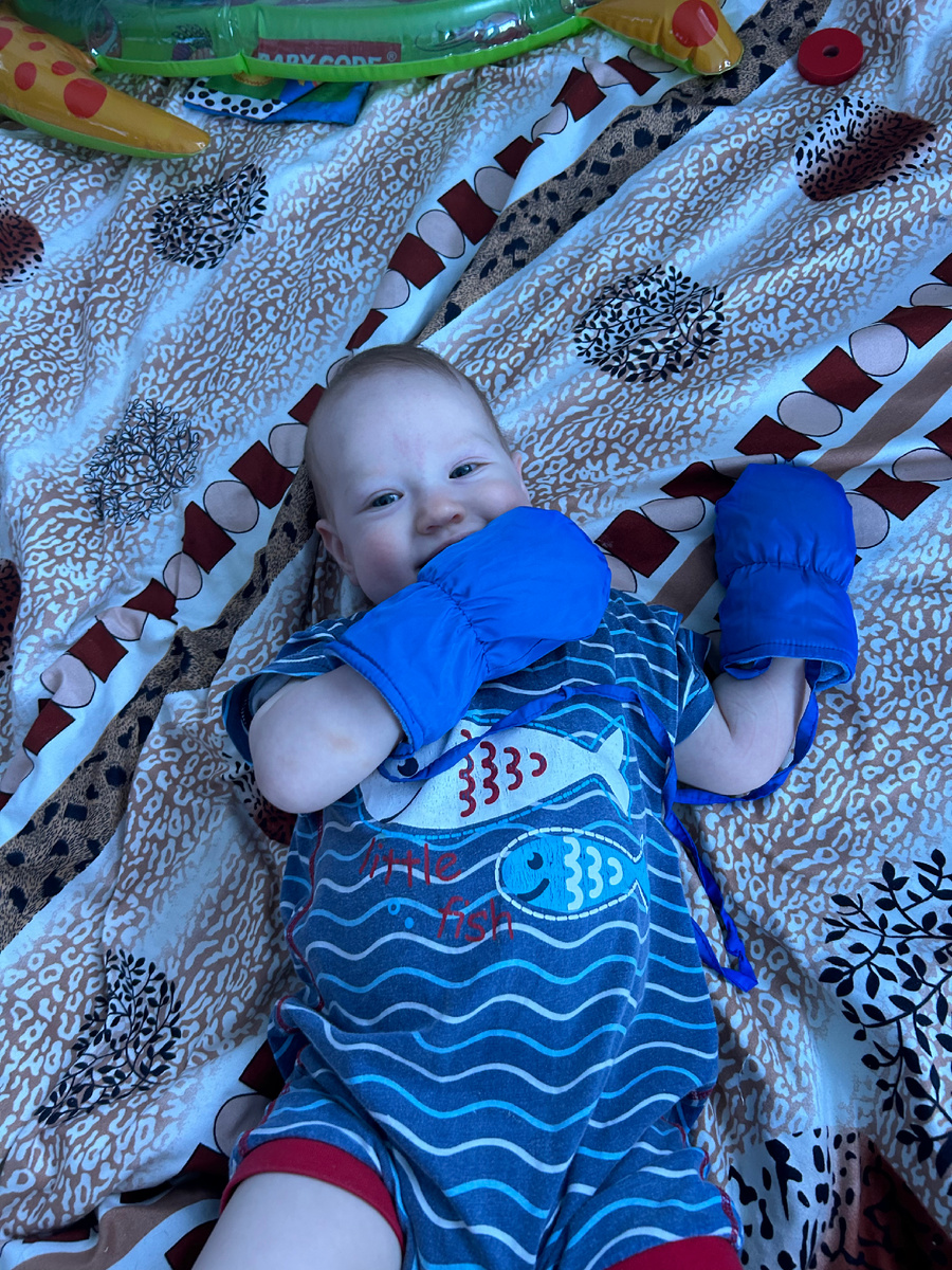 Сегодня наш список игрушек для отвлечения дочки пополнился. Абсолютный лидер на этой неделе - варежки.
