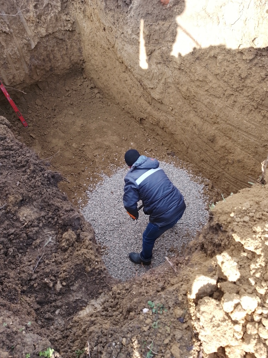 Здравствуйте! Вот и встретили новый год, Всем мои поздравления, с новыми надеждами, с новыми проектами. Теперь можно спокойно приступать к Крымской стройке. Работы достаточно, настроение отличное, пора и выходить с выходных. Еще в канун нового года успели взять в работу очередной объект. Каркасный дом, размером шесть на семь метров. Ну а для начала вызвали трактор, что бы расчистить участок от старых деревьев, и заодно и закопать кольца септика. Погода с утра не задалась, а вот к полудню распогодилось и решили сделать. Четыре кольца, с крышками, с горловинами были оплачены заблаговременно. Ждали погоды, дождались и сделали. Попутно в тот же день напрягли трактор и выкопали траншею под забор на очередном участке в Парусе. Будет еще один забор из Французского камня. Заказчики спрашивают, а что земли так много, договаривались же что вывезем. Ну так вывезли, а заказчикам пришлось объяснять, что землю оставили, потому что земля очень сильно осядет, Что бы потом не пришлось искать земл