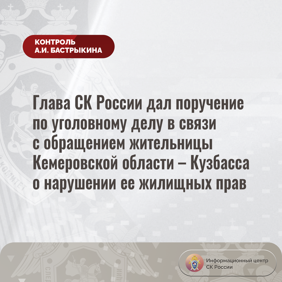 Глава СК России дал поручение по уголовному делу в связи с обращением жительницы Кемеровской области – Кузбасса о нарушении ее жилищных прав