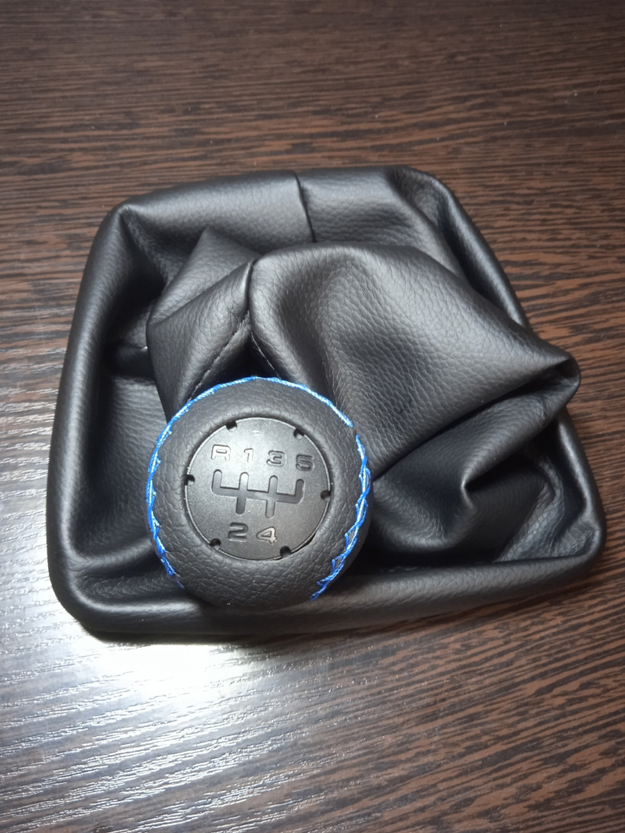Небольшая запись о дополнении салона Калины новыми элементами, из кожи молодого дермантина): — ручка и чехол рычага КПП (Viсtory sale) — 600 руб., артикул 11180-5109070, рукоять, так же как и родная, оборудована резьбовым соединением, для надежной фиксации на рычаге КПП; — вставки панели и ниши прикуривателя (SokolSHOP) — 700 руб., использована экокожа класса — "PREMIUM", строчка выполнена в виде "соты", имеет объемную фактуру. Фиксация большей производится на двухсторонний скотч; — чехол на ручник универсальный (Mertsavto) — 350 руб., на поролоне с декоративной синей строчкой. Длина чехла 15 см, диаметр — 5 см. Чехол имеет внутри резинку для надёжной фиксации на ручке и застегивается на липучку.