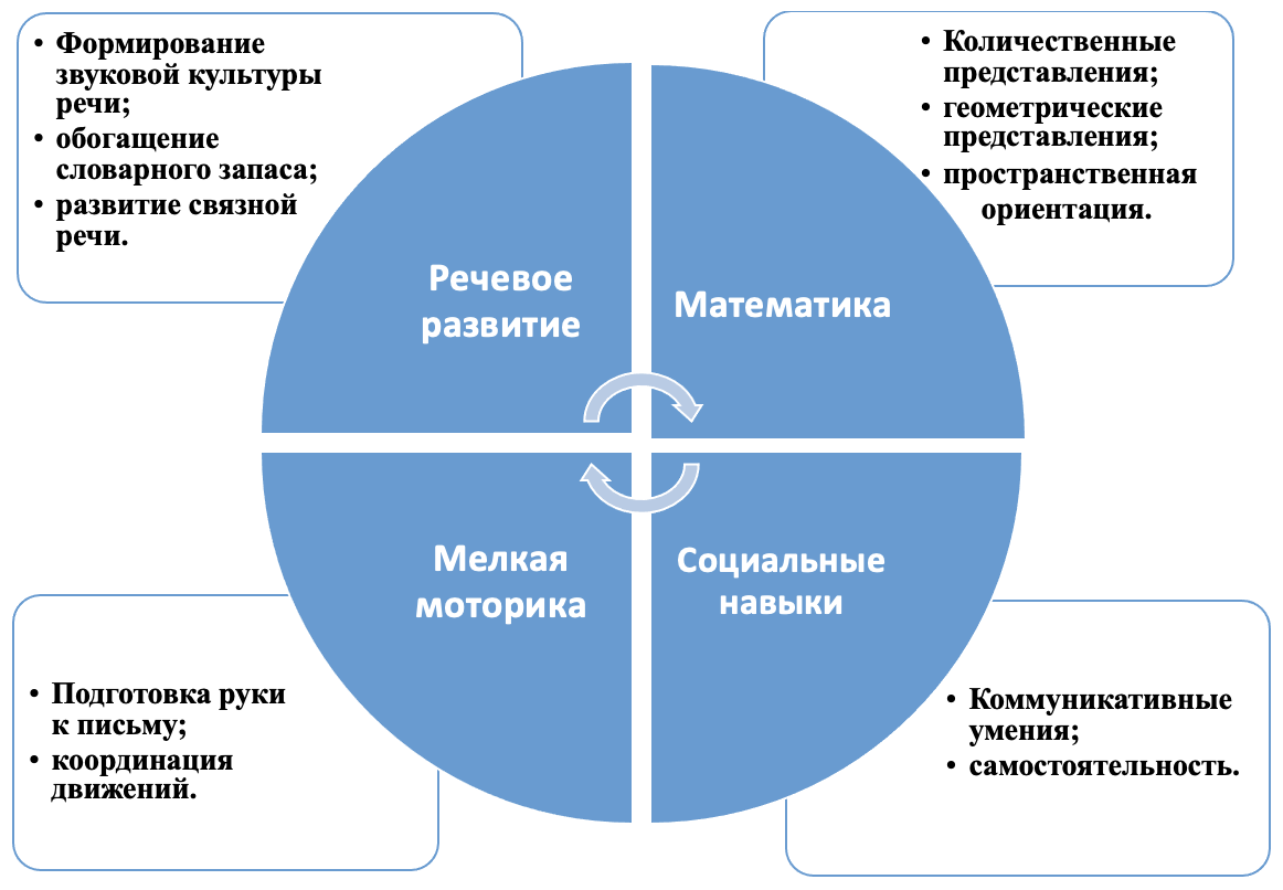 Схематично представим важные аспекты, требующие внимания при подготовке к школе.