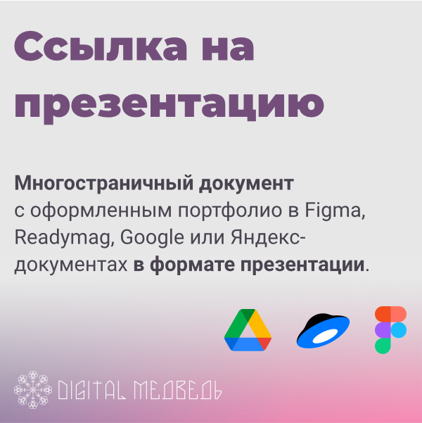 Формат «Ссылка на презентацию» — это второй по удобству способ показать свои работы и проекты после «Ссылки на папку с работами».