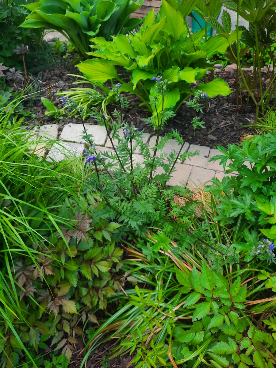 Эх! Первая часть хорошо зашла, вторая похуже! А я, редиска, третью приготовила! Может и не самое диковинное, но интересное знакомство ожидает тех, кто решится прочитать до конца! Или прокрутить, в надежде увидеть что-то интересное для себя. Вот синюха-егоза! Синюха голубая растение простое, не особо требовательное, даже совсем нетребовательное. Не агрессивное, аккуратно сеется. Для природных цветников то, что доктор прописал. Здесь она в начале роспуска. Зелена весь сезон. Будут сеянцы, поменяюсь. Подофиллум. У вас есть подофиллум? Вот так он выбирается из почвы, плтно прижав к стеблю листочки. Постепенно подниаясь все выше, раскрывает веер листочков, похожих на юбочку. Не нашла в архиве-24 ни одного кадра в полном роспуске. Возможно, не попала на этот удивительный момент. Так "куст" будет выглядеть до осени. Под листочками вызреют крупные красные ягоды, тоже декоративные. Семена, закопанные в почву, всходят и вырастают. Правдв растут долго до уровня декоративности. Ягоды съедобные