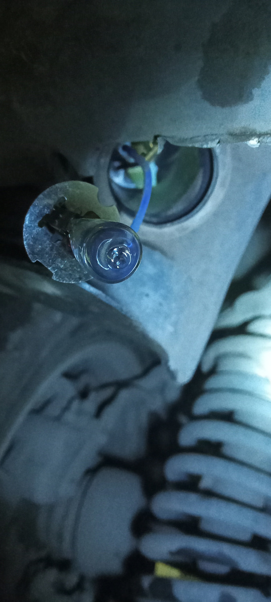 Открутил спереди подкрылок, отогнул его, добрался до ПТФ, произвел замену лампы. Все просто и незатейливо.