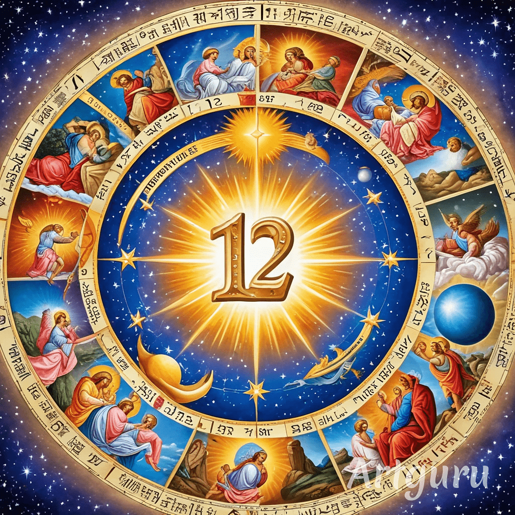 Число «двенадцать» символизирует полный цикл, космический порядок, является символом «философского камня», законченности и божественного круга, вращающего вселенную. Двенадцатеричная структура мироздания, присутствие числа 12 во многих реалиях жизни и религиозно-духовных традициях отмечались многими исследователями.