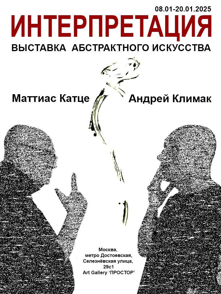 Под конец рождественских каникул в галерее "Простор" состоялось неординарное событие, - открытие полифонической выставки, сочетающей символизм с абстракцией и фантазией. Выставка Абстрактного искусства "Итнтерпретация" немецкого художника абстракциониста Маттиаса Катце и русского художника абстракциониста Андрея Климака. Абстракции Андрея и Маттиаса это карнавал мыслей и фантазий, ты становишься соавтором художника абстракциониста, придумывая новые смыслы в работах последнего. Конечно, писать о выставке, которая еще открыта, почти тоже, что и рассказывать новый фильм перед просмотром, но просто необходимо рассказать о событии в честь открытия, на котором интерпретация двух художников абстракционистов (Маттиас Катце и Андрей Климак) ломала кисти творчества о Черный квадрат Малевича. Одновременно с художниками свой хореографический чёрный квадрат показывали зрителям артисты московского цирка. Перфоманс проходил под звуки Баха, Бетховена, Моцарта и заслуживает отдельного упоминания.
