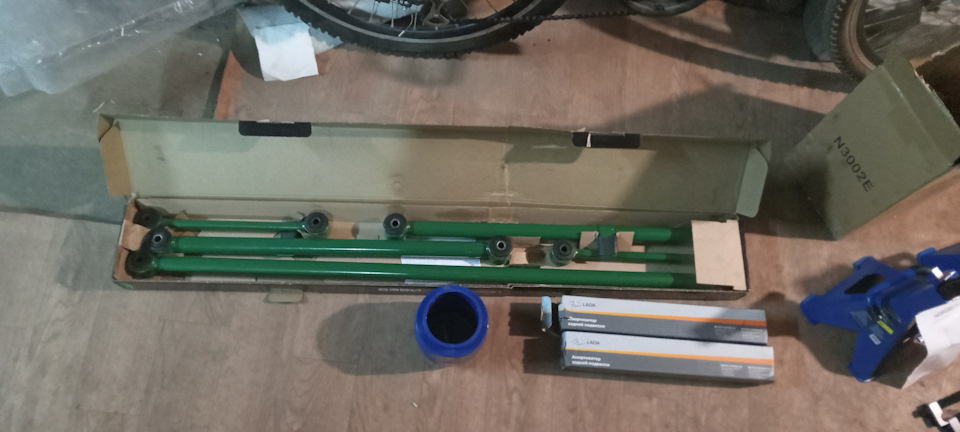 — комплект болтов реактивных тяг — 500 р; Также для ремонта приобрел две стойки (2 тонны) и стяжки для пружин. В расчет не беру, так как это пригодиться в хозяйстве. Ну и, собственно, в отпуске начал заниматься автомобилем. Огорчило то, что после последних "зим с реагентами на дорогах" очень много пришлось откручивать "болгарским ключом". Болты намертво прикипели во втулках сайлентблоков. А так, день работы, и задняя по