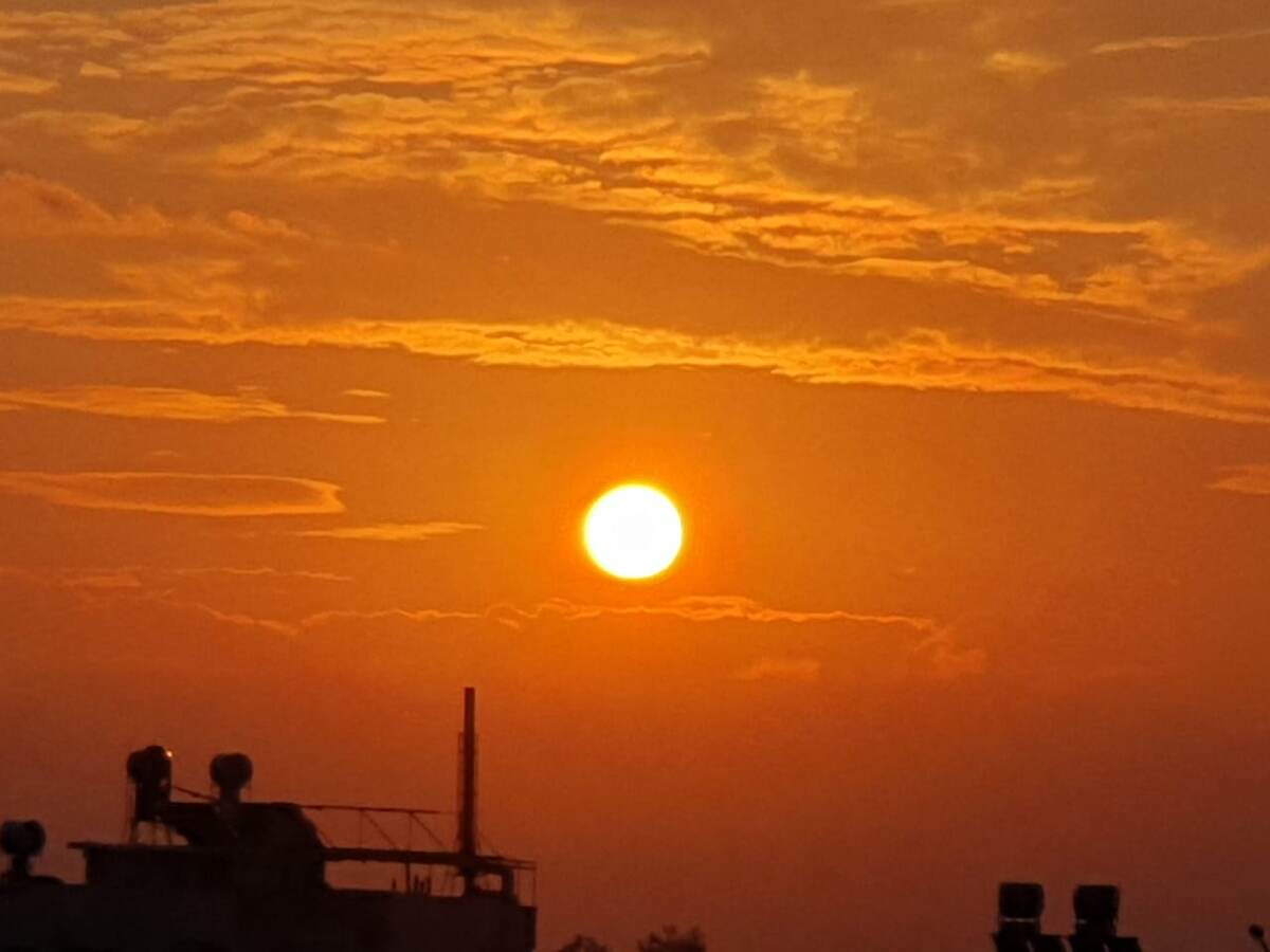 Выхожу к морю. На рейде стоит большой корабль. Издалека видно плохо, по-моему, какой-то грузовой паром.