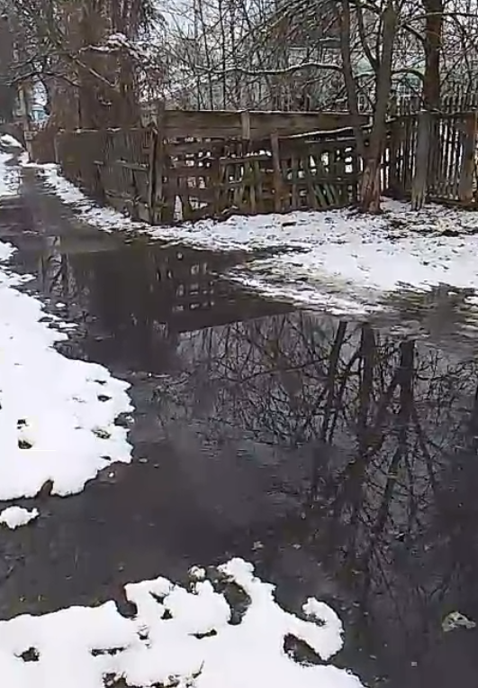 Канализация течет в ливневку и затапливает окрестности на улице Мичурина в Новозыбкове