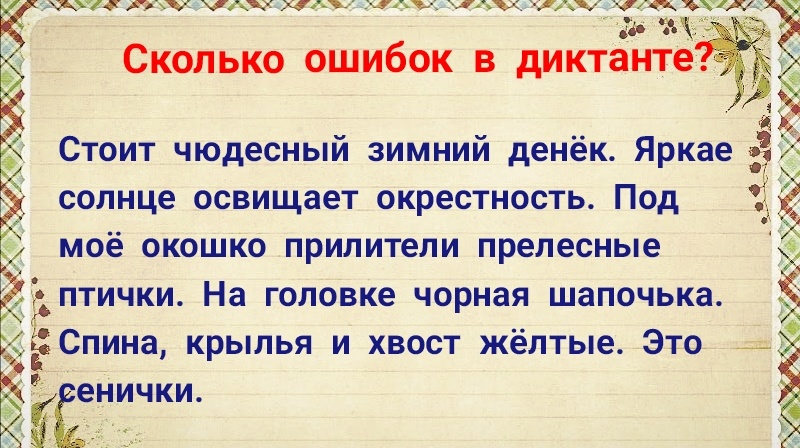Можете назвать себя грамотным человеком? Найдёте чужие ошибки в школьных диктантах? В этом тесте будут четыре текста, которые будут постепенно усложняться от третьего до десятого класса. Вам надо будет не только найти ошибки, но и подсчитать, сколько их. Далее выбрать верный вариант ответа в форме под текстом. Почувствуйте себя учителем, проверяющим школьные тетради. Это отличное упражнение на внимательность и грамотность. Проходить можно всем желающим. Школьникам тоже можно. Но будьте осторожны! Некоторые дети могут не видеть чужих ошибок, а также воспроизводить их потом на письме. Данные тексты - это мини-диктанты для третьего, шестого, восьмого и десятого классов. Родителям и педагогам можно просто диктовать их. В общем, каждый читатель найдёт для себя пользу. Считаем количество ошибок в текстах. Выбираем верный ответ. Результат узнаете сразу при нажатии "ответить". Если останутся вопросы, то в конце публикации дам краткие ответы с перечислением всех ошибок. Отлично получается! В