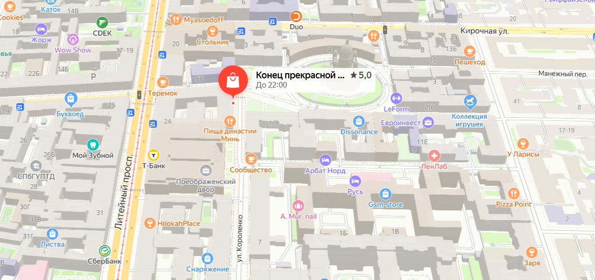 Перенесет вас в ленинградскую коммуналку. Находится бар в доме Мурузи, где жил Иосиф Бродский, прямо напротив Спасо-Преображенского собора. Здесь все пропитано духом 60–80-х годов: от винтажной мебели до напитков в бокалах, которые вполне могли бы стоять в бабушкином серванте по соседству с тем самым красивым сервизом только для праздников.