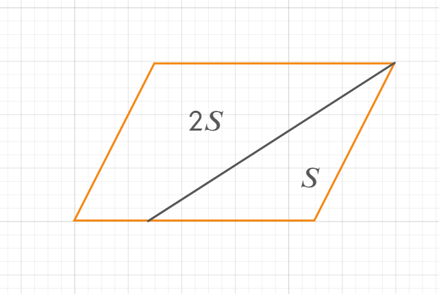 2. ★☆☆ Прямая проходит через вершину параллелограмма и делит его площадь в отношении 1:2. В каком отношении эта прямая делит его сторону?