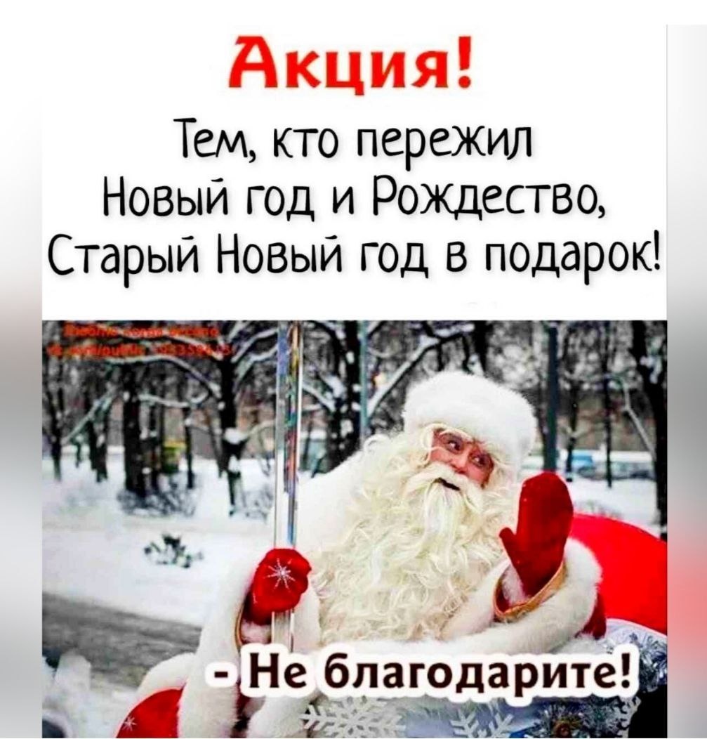 Приветики 🤗. Всех , кого не поздравила с прошедшими праздниками и тех кого поздравила, хочу поздравить с наступающим Старым Новым Годом !Много расписывать с пожеланиями не буду , пожелайте себе то,что вы больше всего хотите и пусть это сбудется ! Погода у нас очень чудная .Снега почти нет, солнца тоже .Зато днём идёт дождь , ночью подмораживает .Улицы сплошной каток . Ходишь с одной мыслью - не звиздякнуться.Самое смешное,наши неугомонные бабуленции так и шастают , бесцельно шатаясь по магазинам . Вчера навещала подругу в больнице ( я потом отдельно расскажу вам одну печальную историю предательства).Так вот,за час в приемный покой подвезли пятерых с ,,поломками,,( последствия гололёда).И до конца зимы обещают такую погоду .Вот такая нынче зима. Чувствую ,что длинные зимние куртки у меня пойдут в ,,запасник,, с прицелом на следующий год.Запас карман не тянет,а цены растут,этот вклад надёжнее банковского.Судя по инфляции,процент моего запаса будет выше.Торгую на данный момент демисезон