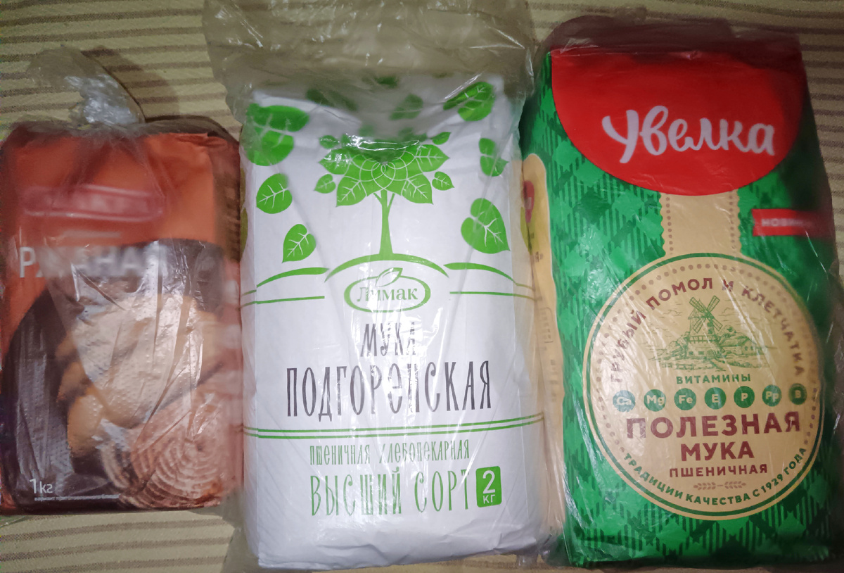Подгоренская - это та самая социальная мука, самая дешевая, но она меня устраивает. В принципе, меня и мука первого сорта устраивает, полезнее будет выпечка (не бисквит, конечно), но не так уж просто её купить. Этой муки целая пачка и ещё примерно треть от начатой.