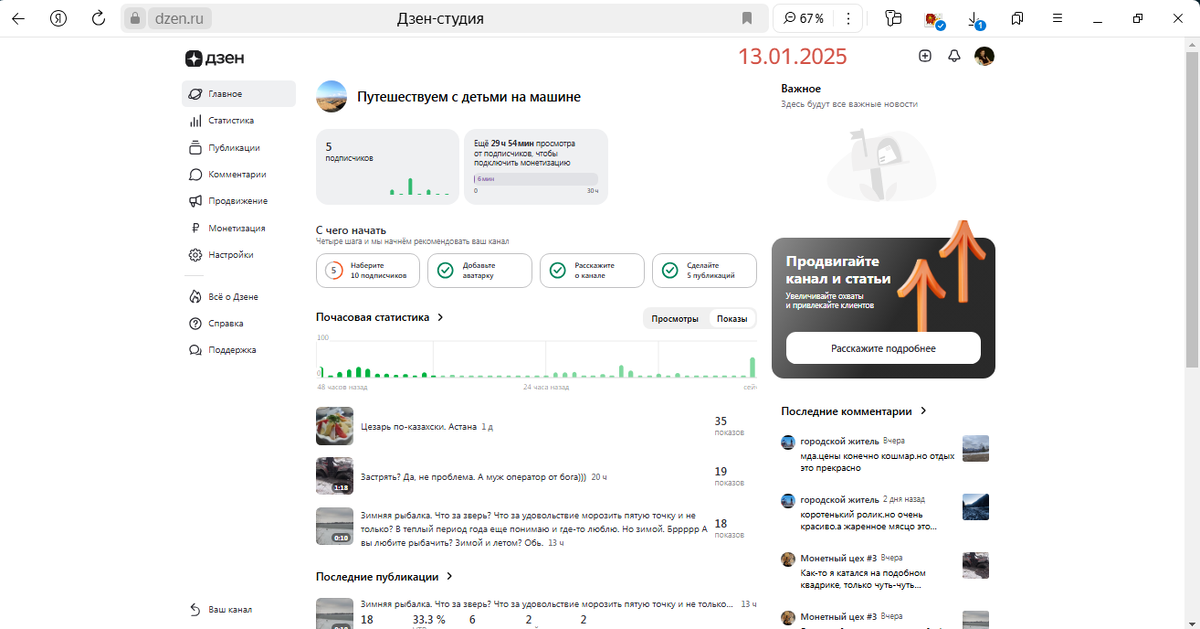 2. Написана и размещена одна статья Катание на Соколах. Второй день Новосибирк - Манжерок , один пост со статистикой от Дзен Статистика и одно видео Зимняя рыбалка (хотела тоже пост написать, но видео не хотелось ни в какую грузиться в пост, поэтому просто видео).