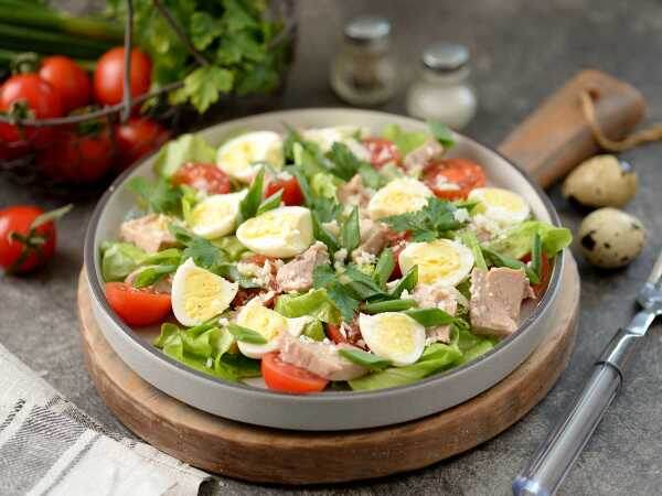 Салат с печенью и помидорами. **Калорийность на порцию:** 386 ккал. - **Куриная печень:** 200 г - **Репчатый лук:** 1 головка - **Чеснок:** 2 зубчика - **Томатная паста:** 20 г - **Помидоры:** 200 г - **Перец чили:** ½ штуки - **Кинза:** 30 г - **Чабер:** по вкусу - **Растительное масло:** 40 мл - **Хлеб:** по вкусу Для одной порции: - Куриная печень: 100 г - Репчатый лук: ½ головки - Чеснок: 1 зубчик - Томатная паста: 10 г - Помидоры: 100 г - Перец чили: ¼ штуки - Кинза: 15 г - Чабер: по вкусу - Растительное масло: 20 мл **Общее время приготовления:** около 40 минут. Салат с печенью и помидорами имеет свои корни в традиционной кухне, где печень использовалась как доступный источник белка. Печень, особенно куриная, высоко ценится за свою питательную ценность и универсальность в кулинарии. В странах Кавказа и Средней Азии блюда из печени часто подаются с овощами, что подчеркивает их вкус и делает их более легкими. В этом салате акцент сделан на сочетании печени с помидорами, которые доб