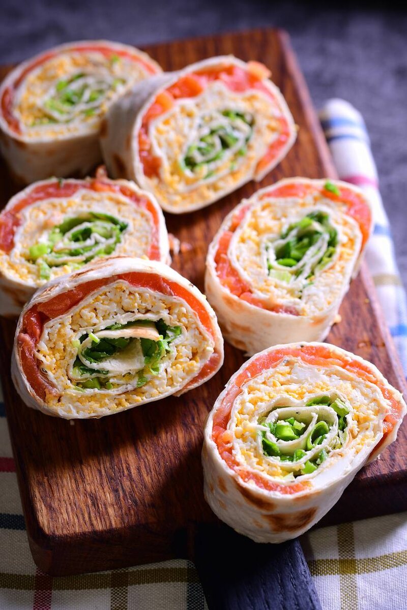 Всем привет, мои хорошие! Уже совсем скоро мы врываемся в полноценную рабочую неделю после праздников, а пока ещё раскачиваемся на качелях двухдневной, которая так быстра прошла, можно сказать, неким аперитивом для основной. Кто-то, наверное, решил продлить выходные и взять пару дней за свой счёт, а кто-то и вовсе оформил отпуск, в любом случае, в самое ближайшее время, настраиваться на рабочий лад придётся всем, как бы нам не хотелось задержаться в чильном настроении праздничных дней) А пока, у нас с вами сегодня пойдёт речь о рецептах быстрых и вкусных закусок, которыми я чаще всего пользуюсь, и для тех, у кого еще нет книги с моими рецептами, я поделюсь парочкой секретов из них) Ну что поехали! Что нам понадобится для рулета: • Лист лаваша - 30×40 • Сыр творожный - 130 гр • Яйцо отварное - 3 шт • Форель слабосоленая - 200 гр • Лук зелёный- 50 гр Размазываем творожный сыр по всему лавашу тонким слоем и зрительно разделяем его на три части. На первую нижнюю часть насыпаем мелко нарез