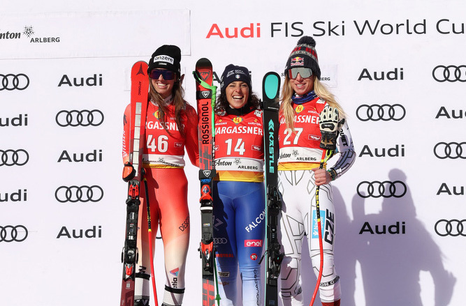 Еще одна опытная итальянка Федерика Бриньоне, похоже, превосходно себя чувствует в Санкт-Антоне. Вчера она одержала победу в скоростном спуске – первую в карьере. А два года назад она была на подиуме в обоих супергигантах: выиграла первую гонку и заняла второе место во второй. В настоящее время Бриньоне занимает четвертое место в зачете супергиганта, она дважды финишировала на пятом месте.