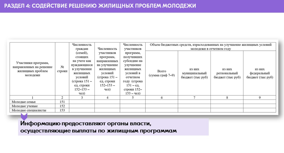 Если на соответствующем уровне жилищные программы не реализуются, никакую из строк раздела 4 информацию вносить не нужно.