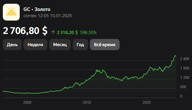 В начале 2024 года цена на золото оставалась на высоком уровне, составляя около 2000 долларов за унцию. Однако после некоторого периода стабильности в течение года стоимость драгоценного металла стремительно возросла.