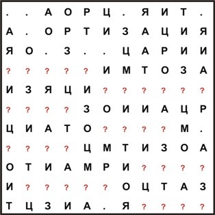 ОТВЕТ: Один из возможных путей решения (строка колонка символ правило): 22м1 17а3 12и3 1bм3 11з1 35а3 36т3 33м1 41р3 61м3 81а2 63т3 7bи3 98з3 78р3 77а3 57р2 5aа3 56а3 59м3 58о3 5bт1 b8м2 79я3 76з1 99а3 b9и2 9aя3 9bц1 baр2 bbо2 b6а1 a6я2 a5и3 45я2 42а3 44и3 43ц1 62я3 64а1 82р3 a2а2 83и3 84я1 a3р2 a4м2 Контрольные слова: РАЦИЯ АРОМАТ МЯТА ЗАРЯ АРИЯ ЗАЯЦ АРМИЯ МИРО
