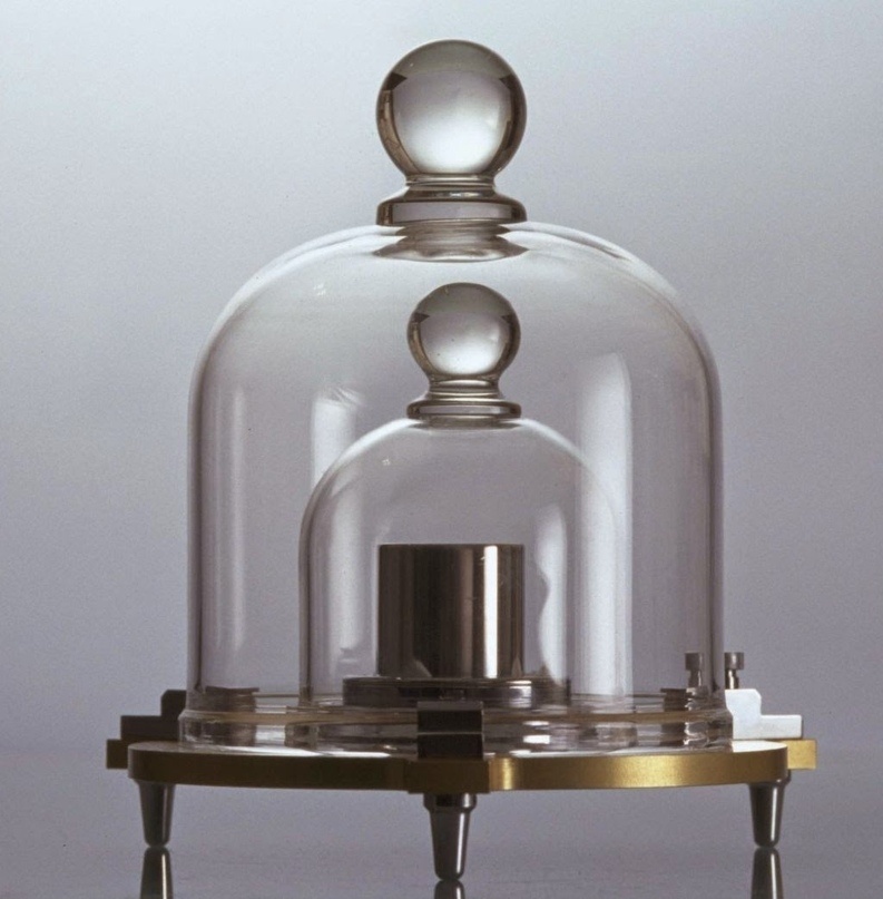 За единицу массы принят 1 кг. Эталон этой массы был выпущен Генеральной конференцией по мерам и весам в 1889 году на основе решений Метрической конвенции (1875). Он отдан под надзор Международного бюро мер и весов в Париже, которое хранит его. Этот эталон представляет собой цилиндр диаметром и высотой 39,17 мм из платино-иридиевого сплава, в котором 90 % платины и 10 % иридия.