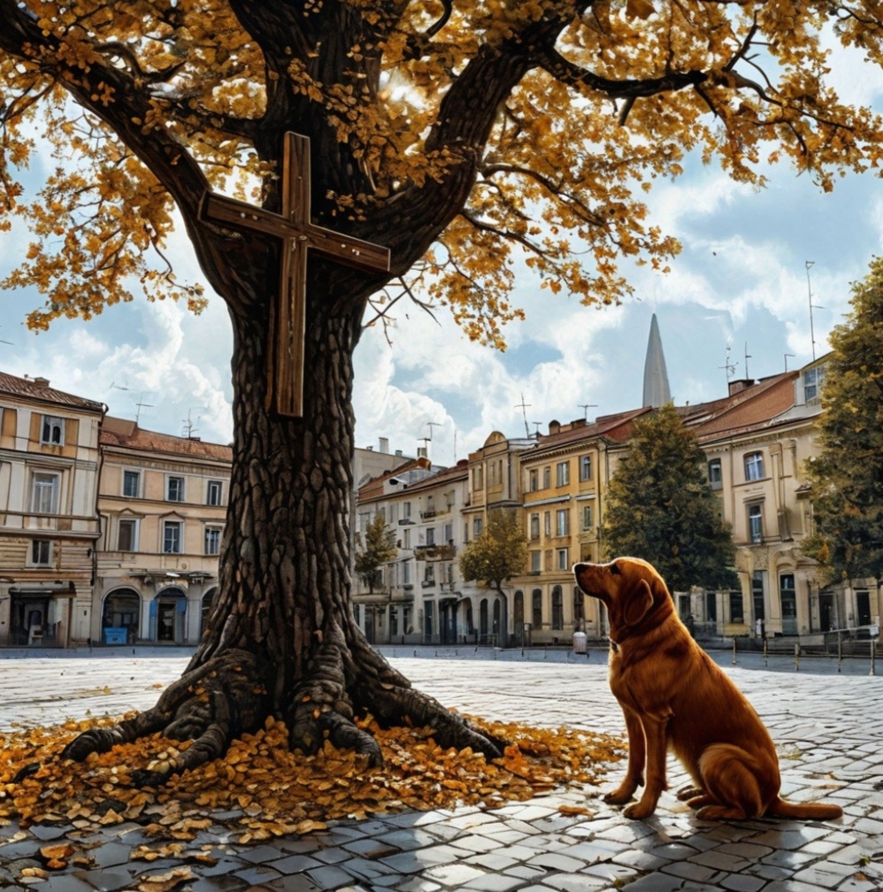 Мальчики переглянулись, почувствовав неладное. Затем оба посмотрели на дерево с распятой на нём собакой. Какой-то мужчина наконец принес топор и теперь пытался отодрать крест от ствола. Дима перехватил унылый взгляд Святоши и спросил: