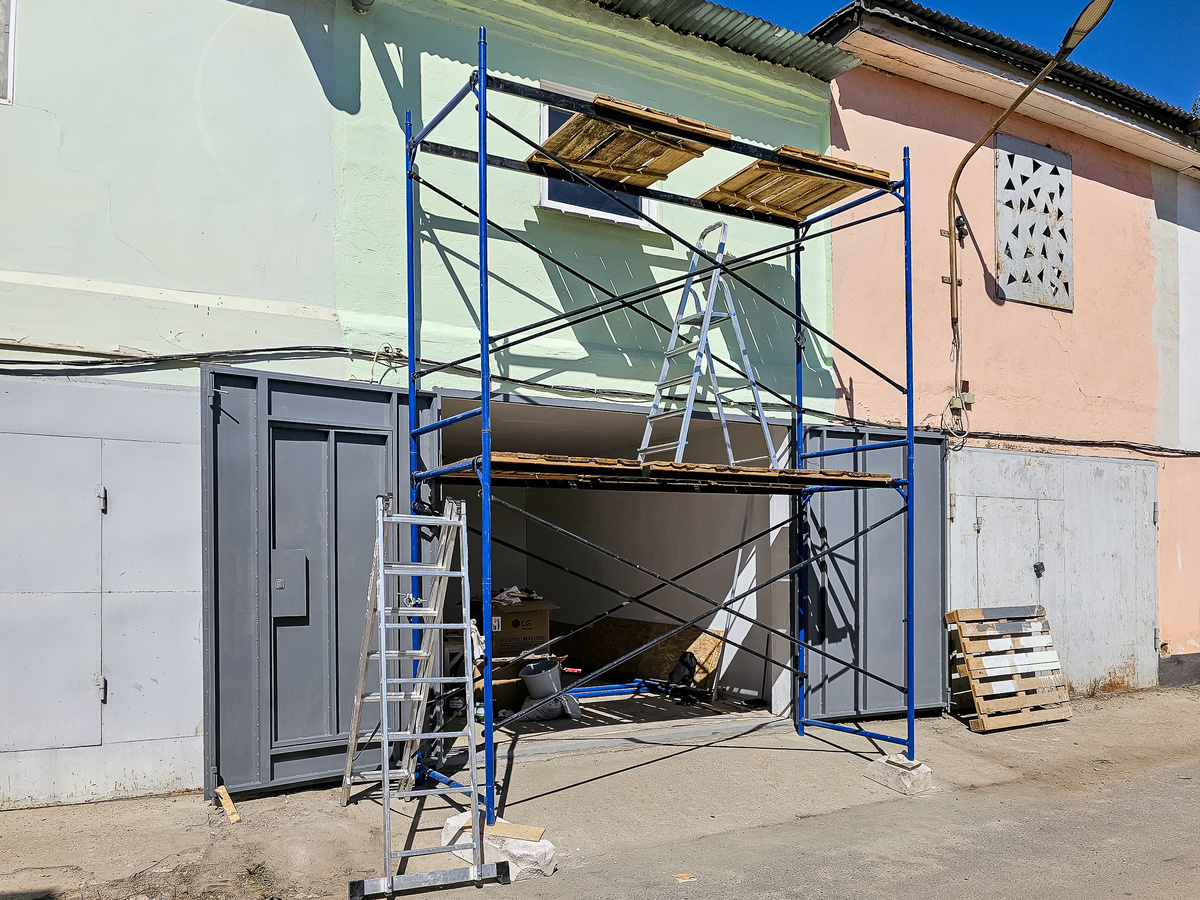 Утомительный первый этап заставил взять паузу и передохнуть. Отдыхом в данном случае я называю не полную остановку работ, а снижение её интенсивности. По полдня я собственноручно дорабатывал стеллажи, ставил вентрешётки, перебирал электрощитки, монтировал ручку и доводчик, замазывал внешние щели, закрывал фасад металлическим листом, рисовал номер гаража...