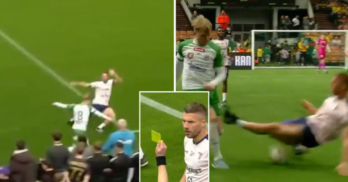 🎥 Подольски сошел с ума? Экс-форвард «Арсенала» в товарняке двумя ногами прыгнул на соперника и швырнул в лицо мяч