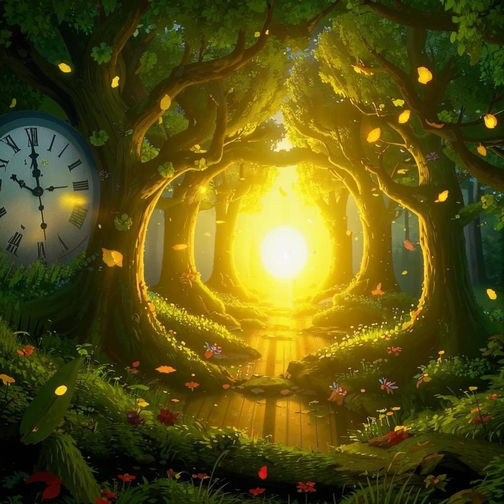 В тихом и волшебном лесу, где часы растут на деревьях, а время течет по-своему, живет маленький мальчик по имени Финн. Он осиротел, но его приютил старый и загадочный часовщик, который хранит секрет создания самых удивительных часов. Однажды Финн находит старинные чертежи, и это отправляет его в захватывающее приключение, где он узнает не только о магии часов, но и о силе дружбы, смелости и любви. В глубине леса, где солнечные лучи играли в листве, а ветер шептал сказки, стоял маленький домик. В нём жил старый часовщик по имени Элиас и его приёмный сын, Финн. Элиас был не просто часовщик, он был волшебником времени. Он умел создавать часы, которые не только показывали время, но и могли замедлить его, ускорить или даже отправить в прошлое. Финн был любознательным мальчиком, и ему нравилось наблюдать, как работает Элиас. Он мечтал стать таким же мастером времени. Но Элиас был очень скрытным и не делился своими секретами. Он говорил, что время – это великий дар, и его нужно использовать с