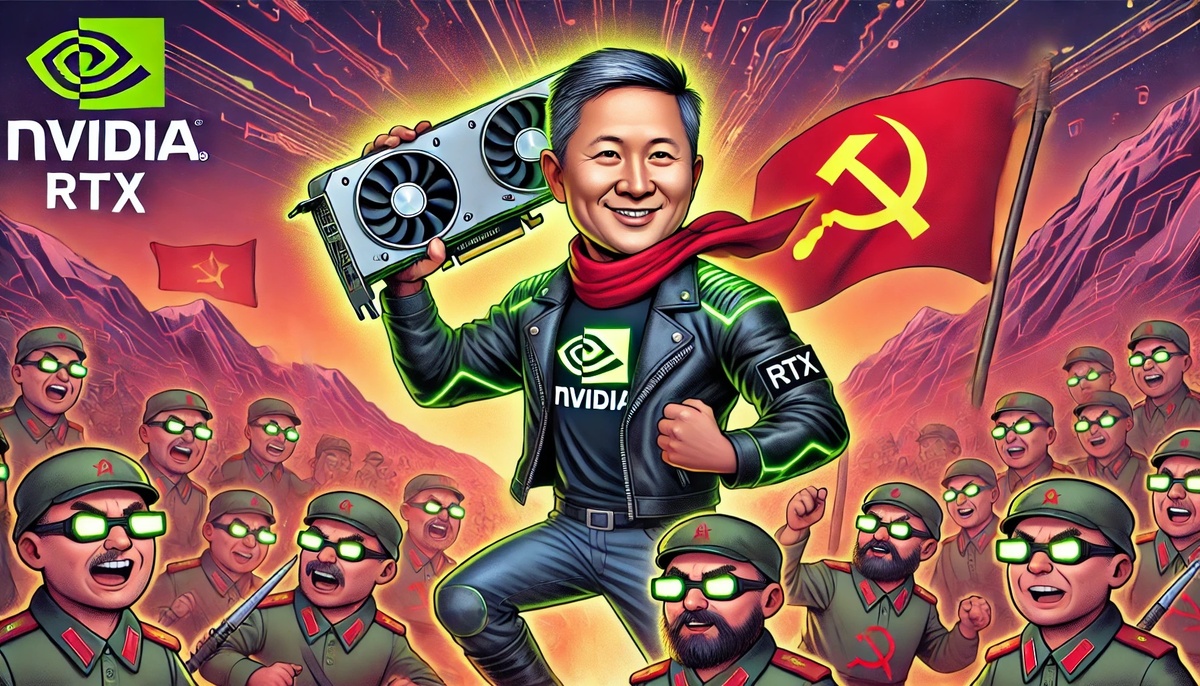 Возможно, вы не в курсе, но RTX 5070 — это самая младшая видеокарта из анонсируемой линейки. Это самый низ из всего представленного, замыкающая модель. А на стене написано, что Дженсен Хуанг присоединяется к Дональду Трампу в торговой войне против Китая, и больше ни одна видеокарта Nvidia не попадет в Китай. "Куртка" прямым текстом заявила, что выступает против коммунистов в будущем противостоянии и будет за всё хорошее против всего плохого.