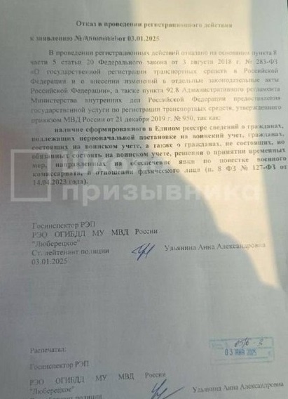 Военкоматы стали накладывать ограничения на граждан, игнорирующих повестки, а госорганы начали их исполнять. Так, 30-летнему жителю Москвского региона отказали в регистрации автомобиля, сославшись на ограничения, введенные военкоматом и указанные в Реестре воинского учета.