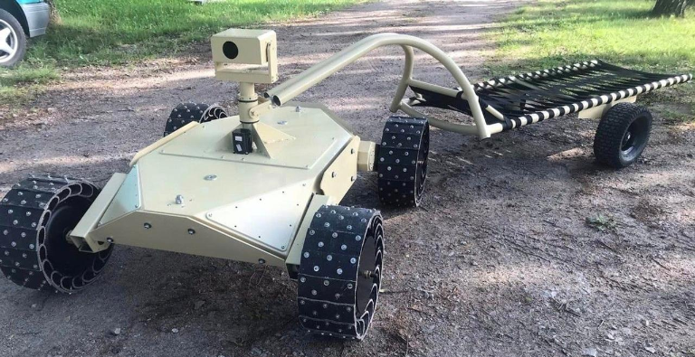 Украинские специалисты спроектировали новую беспилотную платформу, предназначенную для эвакуации раненных бойцов с поля боя. Об этом в Facebook сообщил предприниматель Владимир Яценко. В опубликованном им сообщении отмечается, что в настоящий момент разработчики платформы заняты усовершенствованием модуля связи и системы автопилотирования. Операционная дальность автоматизированного эвакуатора составляет 10 км. На нём установлена HD-камера, изображение с которой транслируется на пульт по защищенному каналу связи. В качестве ретранслятора сигнала применяется беспилотник «Довбуш». Платформа получила электрический привод из четырех независимых электромоторов. Грузоподъемность платформы составляет 150 кг, дальность работы пульта управления до 100 метров. В ходе испытаний платформа доставила «пациента» весом 90 кг к «медикам» по пересеченной местности. Платформа стоит 70 тысяч гривен (по другим данным 350000 грн). Такие платформы планируют использовать не только для эвакуации, но и для подв