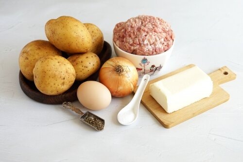Картофельная запеканка с фаршем – простое, недорогое и очень вкусное блюдо два в одном (гарнир к нему не требуется). Достаточно добавить свежие овощи, и полноценный обед готов. Запеканка по этому рецепту получается очень нежной, воздушной и ароматной. Сочетание картофеля с сочным фаршем - одно из любимых. Детки такую запеканку кушают всегда с большим удовольствием. Ингредиенты: Приготовление: 1. Приготовить все ингредиенты для картофельной запеканки с фаршем по классическому рецепту. Фарш должен быть охлаждённым. В данном рецепте использовался свино-говяжий домашний фарш. Его можно заменить на куриный или фарш из индейки. 2. Подготовить картофель для запеканки с фаршем по классическому рецепту. Очистить его от кожуры и промыть. Нарезать картофель крупными ломтиками. Они должны быть примерно одинакового размера, чтобы картофель равномерно приготовился. Переложить картофель в кастрюлю. Залить холодной водой. Добавить 1 чайную ложку соли. Закрыть кастрюлю крышкой и поставить на огонь.