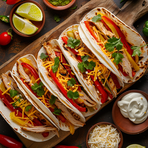 Любите пикантные блюда? Фахитас с индейкой и овощами — это яркое сочетание сочного мяса и хрустящих овощей в тёплой тортилье. Быстро, вкусно и идеально подходит для уютного ужина в кругу семьи или друзей. Нарежьте филе индейки тонкими полосками. Перцы и лук нарежьте соломкой, чеснок измельчите. Разогрейте сковороду с оливковым маслом на среднем огне. Добавьте индейку и обжаривайте до золотистой корочки (около 5-7 минут). Выложите к индейке перцы, лук и чеснок. Добавьте чили, паприку, орегано, соль и перец. Перемешайте и готовьте ещё 5 минут, чтобы овощи стали мягкими, но сохранили лёгкую хрусткость. Сбрызните содержимое сковороды соком лайма и перемешайте. Разогрейте тортильи на сухой сковороде или в микроволновке. Выложите на каждую тортилью порцию индейки с овощами. Подавайте со сметаной, зеленью и ломтиками лайма. Попробуйте этот простой рецепт и наслаждайтесь атмосферой мексиканского ужина дома! Поделитесь своими впечатлениями и любимыми начинками для фахитас в комментариях!