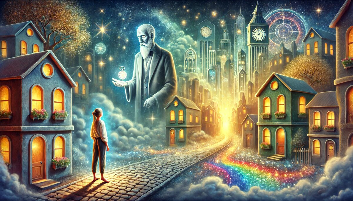 Мария появилась в городе снов случайно. В тот вечер она долго не могла заснуть, чувствуя, как капли дождя стучат по подоконнику, словно отсчитывая минуты до чего-то важного. Закрыв глаза, она вдруг ощутила, как холодный ветер коснулся её лица, и осознала, что больше не лежит в своей постели. Перед ней раскинулась каменная мостовая, а над головой зажглись звёзды, каких она никогда не видела. Она засыпала под звук дождя, как вдруг ощутила, что стоит босыми ногами на каменной мостовой. По обе стороны от нее поднимались дома с окнами, за которыми мерцали звезды. Каждый дом словно был живым — дышал, прислушивался, шептал что-то едва слышное. Её собственные шаги отзывались эхом, и это было странно, ведь города никогда не были такими тихими.