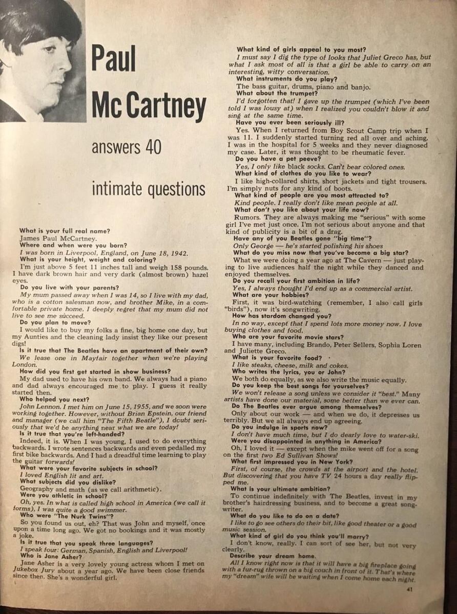 • Битл Пол МакКартни отвечает на 40 личных вопросов