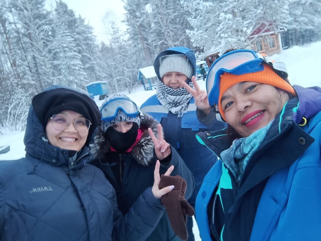 Мы начали свое путешествие с легким волнением и предвкушением. Первая часть пути пролетела на снегоходах, и ветер шумел в ушах, как бы пытаясь отвлечь нас от ощущений, которые возникали с каждым метром. Солнце светило ярко и нежно, а искрящийся кристаллами снег поднимал настроение. Казалось, что зимний пейзаж родной Башкирии окружает своими объятиями, и каждая белоснежная ветка ёлки вдоль снежной тропы шептала о том, что впереди нас ждёт нечто особенное.