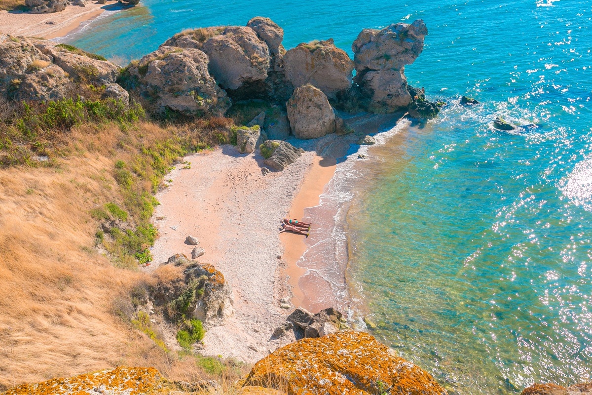 Генеральские пляжи- лучшие пляжи Крыма! Так ли это на самом деле, давайте разбираться вместе. Сегодня несколько десятков уединенных пляжей называют "Русским Таиландом". Стоит ли ехать сюда, а если ехать, то в какое время? Генеральские пляжи в Крыму расположены на северной кромке Караларского заповедника, от села Золотого до посёлка Курортного. Их протяжённость вдоль побережья Азовского моря составляет от 26 до 30 километров. Береговая линия представляет собой открытые бухты с пляжами, чередующиеся со скалистыми выступами. В общей сложности тут насчитывают около тридцати бухт разного ландшафта и размеров. Каждая бухта пляжей имеет собственное название, например, Бухта Радости, Солдатский пляж, Коровья бухта, Бухта Шелковица, Сиреневая бухта, Барсучья бухта, Бухта Иванова, Бухта Странника. Добраться до Генеральских пляжей можно на машине или пешком из ближайших населённых пунктов. Расстояние до пляжей из Керчи составляет около 30 км. К берегу ведёт грунтовая дорога от Золотого до Курортн