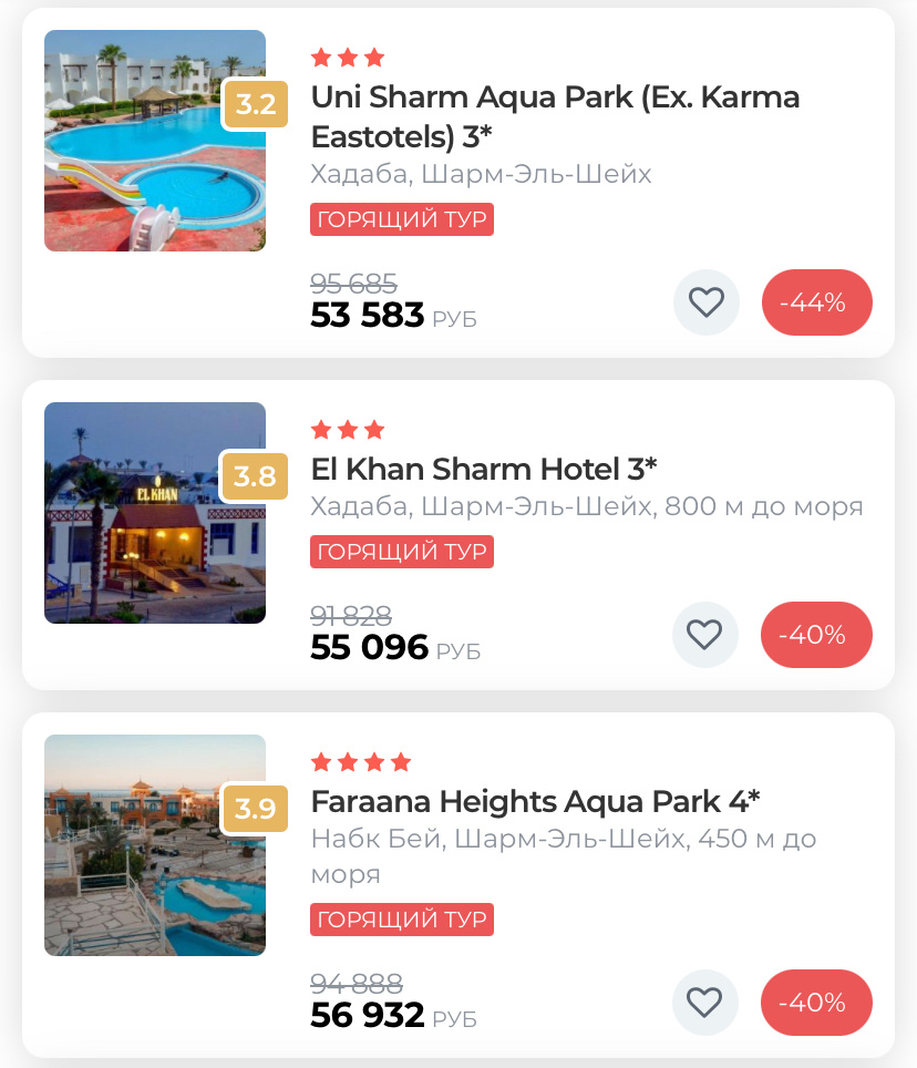 53 500 на двоих, в стоимости самого дешёвого тура в отель Uni Sharm Aqua Park 3*: авиаперелеты с багажом 23 кг, ручной кладью 10 кг и горячим завтраком с чашкой кофе или чая. Плюс трансферы, страховки, проживание и питание полупансион.