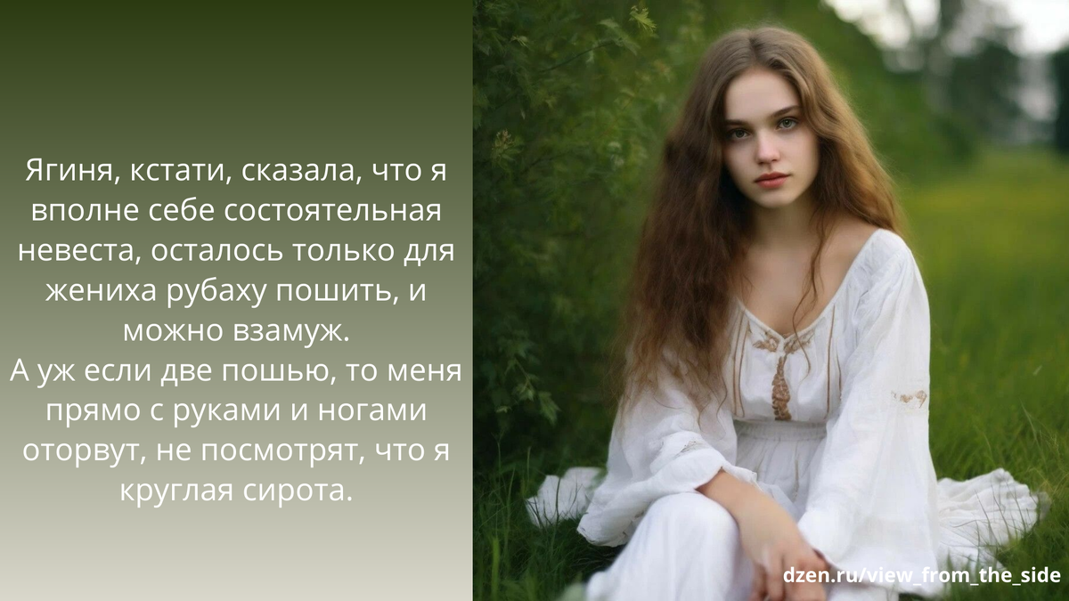 Ягиня, кстати, сказала, что я вполне себе состоятельная невеста, осталось только для жениха рубаху пошить, и можно взамуж. А уж если две пошью, то меня прямо с руками и ногами оторвут, не посмотрят, что я круглая сирота. Так ведь даже удобнее, можно со мной делать, что заблагорассудиться. Заступиться ведь некому будет.