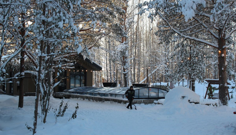 На подходе к парк-отелю «Talo Rinda» я наткнулась на горы строительного мусора, аккуратно припорошенного свежим снегом.