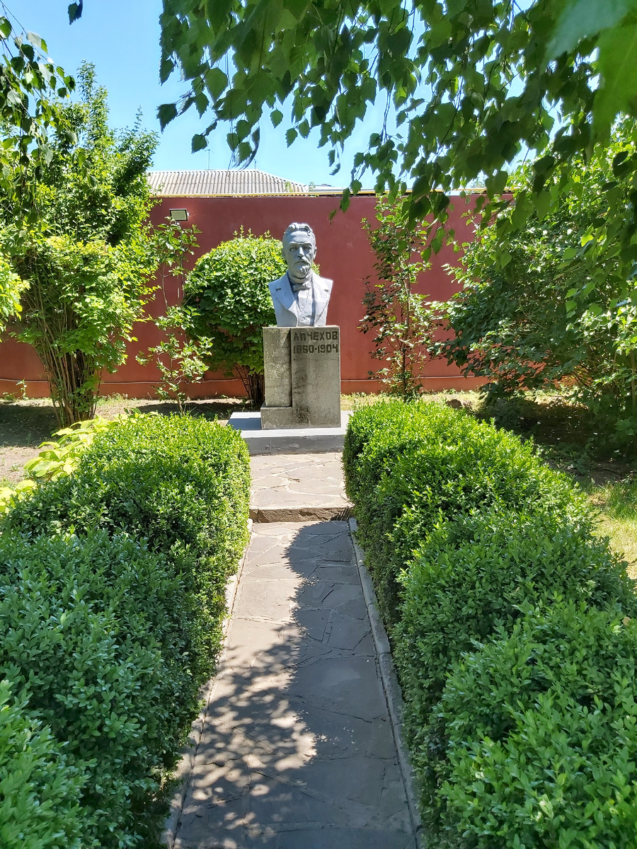 Продолжаю рассказывать о своей поездке в Таганрог. Маршрут я составила заранее, и после прогулки по Приморскому парку, о которой писала в этой статье https://dzen.ru/a/Z4JD2VP_PEbu_4oP отправилась смотреть дома самых известных из родившихся здесь людей-Антона Павловича Чехова и Фаины Георгиевны Раневской. Первым посетила домик Чехова, в нем находится музей великого писателя, вход стоит совсем недорого (в районе 150 рублей). На входе установлен памятник Антону Павловичу Дом совсем небольшой В нем всего три комнаты и кухня. А ведь Антон Павлович был третьим ребенком в семье, трудно представить, как такая большая семья размещалась в этом скромном доме. Вот так выглядят сени-прихожая кухня и комнаты Работницы музея рассказали, что некоторые предметы интерьера были созданы по описанию, но большинство оригиналы, оставшиеся от семьи Чеховых. Посещение домика-музея оставило самые приятные впечатления. Мне было очень интересно бродить по комнатам и рассматривать обстановку. И очень странно ос
