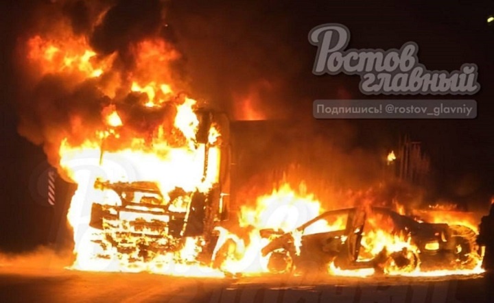 Под Ростовом два человека сгорели заживо в ДТП с грузовиком и легковушкой