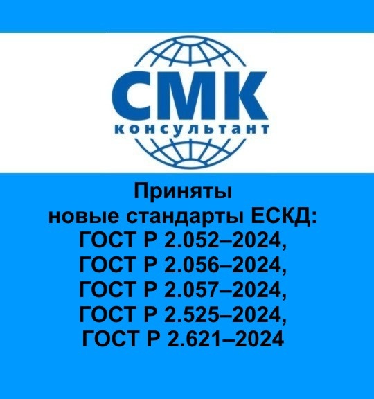 Приняты новые стандарты ЕСКД: ГОСТ Р 2.052–2024, ГОСТ Р 2.056–2024, ГОСТ Р 2.057–2024, ГОСТ Р 2.525–2024, ГОСТ Р 2.621–2024